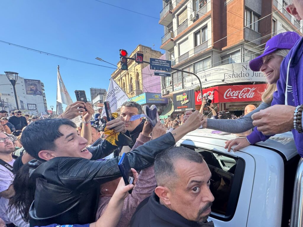 Mientras las personas se abalanzaban sobre el vehículo, Milei gritaba y sacudía los brazos a su gente. “Él es el único que puede terminar con la corrupción y nos puede devolver la dignidad que nos robaron los kukas en estos años», afirmó la actual concejal de Lomas de Zamora por LLA, Cecilia Gómez, quien busca renovar su banca en estas elecciones, en diálogo con AUNO.