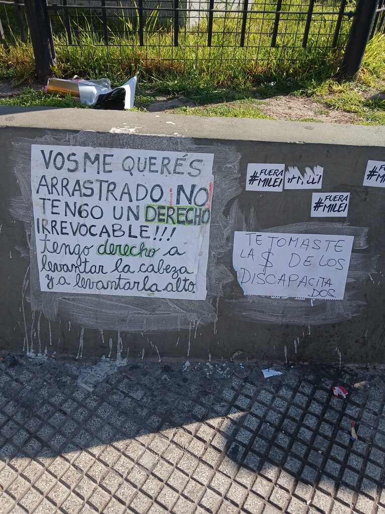 La oposición también estaba expectante de la llegada de Milei. Habían convocado a la militancia en la Plaza Grigera para rechazar su primera visita desde que asumió la Presidencia. A través de carteles y gritos, la tensión escalaba a medida que aparecían los simpatizantes de LLA, entre los señalamientos por la condena a Cristina Kirchner y los cantos “la casta tiene miedo”.