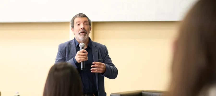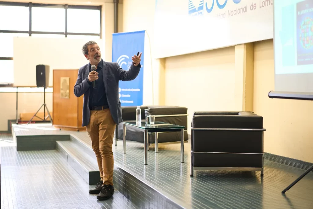 El doctor en comunicación estuvo a cargo de abrir la actividad, que también contó con charlas acerca de Inteligencia Artificial y narrativas en redes sociales, entre otros talleres y conferencias a las que asistieron docentes, no docentes y estudiantes.