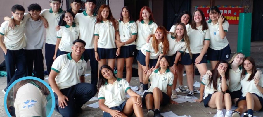 Estudiantes de sexto año del Instituto Juan Pablo de Rafael Calzada incluyeron el logo del archipiélago en sus chombas de egreso para homenajear a los veteranos y caídos de la Guerra de Malvinas. “Es una forma de rendirles tributo”, destacaron los jóvenes.