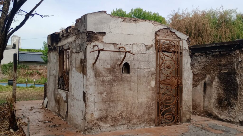 En el espacio en el que se encontraba el quincho la brisa todavía levanta los restos de polvo y cenizas que quedaron del fatídico sábado en que las llamas se devoraron la mitad de la casa ubicada en la esquina de Canale y Dorrego, José Mármol. Casi como un milagro, en un altarcito empotrado que desafía el tiempo; una virgen totalmente blanca, con su niño, fue testigo del fuego.