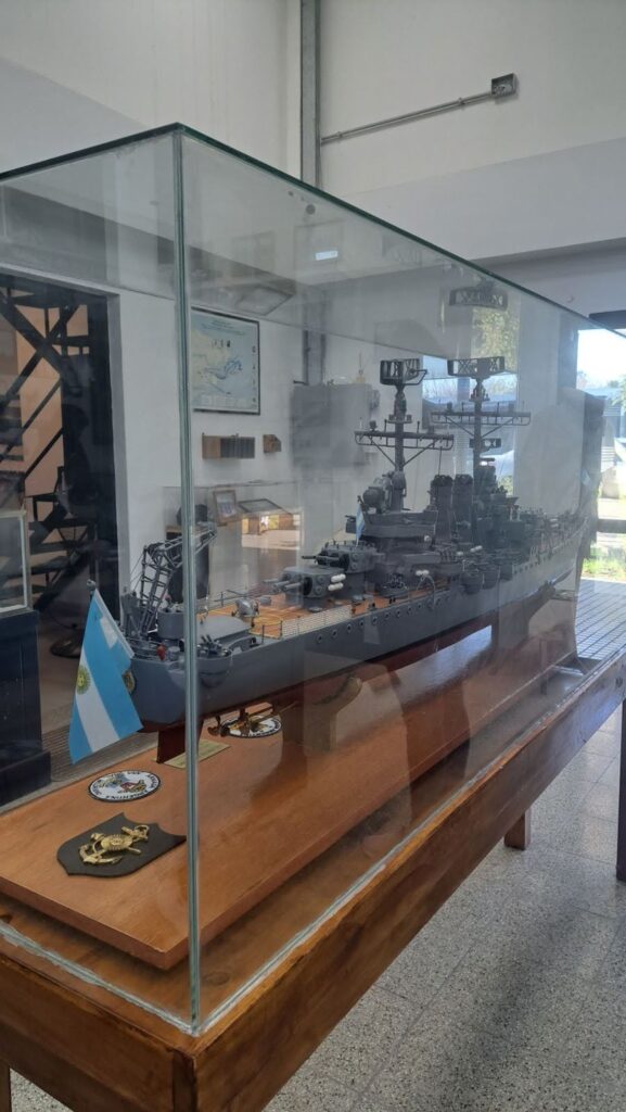 Rubén y Carlos llevaron a su nieto a conocer el museo. Mientras el nene de diez años se mueve inquieto entre las vestimentas y los objetos utilizados en la contienda, la curiosidad de los adultos de unos setenta años los hace detenerse en la maqueta del Crucero ARA General Belgrano. La réplica exacta mide un metro ochenta y pertenece a Guillermo Carro, sobreviviente del hundimiento que se llevó las vidas de 323 tripulantes, casi la mitad de los caídos en la Guerra de Malvinas. En un principio, se lo había mandado a construir para él, pero —para que no le ocupara lugar en el living y quedara deslucido en su casa— finalmente decidió donarlo al museo.