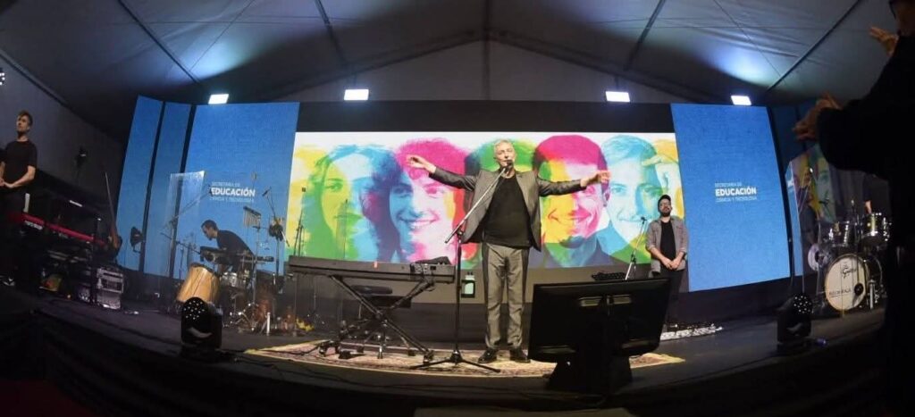 Pedro Aznar deslumbró con su presentación en el cierre de la novena edición de la Feria Internacional del Libro de Almirante Brown (FILAB) en una noche lluviosa llena de nostalgia, alegría y encuentros con libros que “abren la cabeza y evitan que vuelva el fascismo”, aseguró.