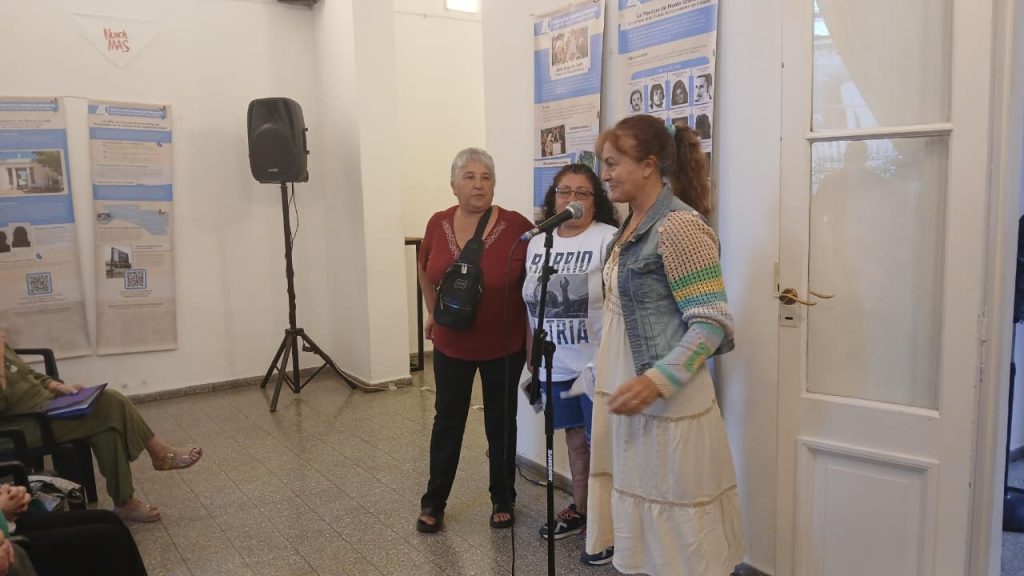 También hay un homenaje a Aida Bogo de Sarti, la Abuela de Plaza de Mayo de Monte Grande. Una imagen suya con la frase Nunca Más es parte de la presentación.