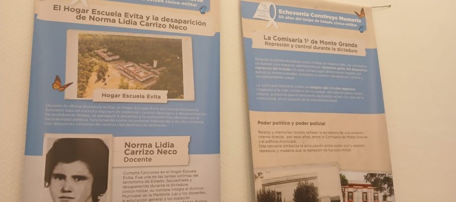 «Seamos libres para pensar y que nadie nos persiga por eso», aseguró Tereza Carrazan durante un homenaje a su esposo Carlos Felipe Ochoa y a muchos otras vecinas y vecinos de Esteban Echeverría que fueron secuestrados y desaparecidos en la última dictadura cívico-militar. Con esas palabras quedó inaugurada Echeverría construye memoria, una muestra que recorre la historia de las víctimas y de los sitios de memoria de ese partido al sur del conurbano bonaerense.