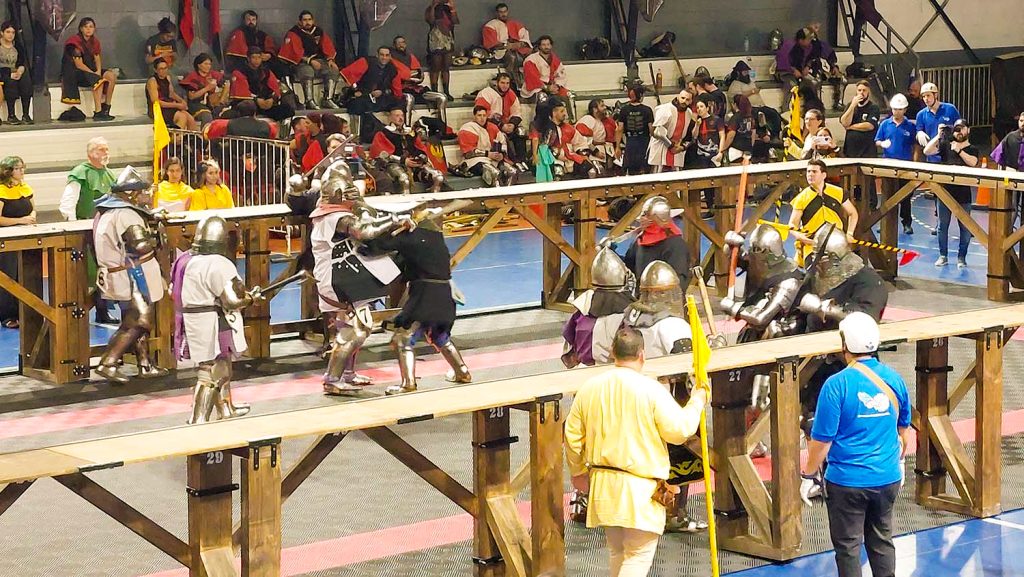 “Este deporte representa mi vida, soy un apasionado por más de que lo sufro”, se sinceró Agustin Paglialunga, capitán del equipo masculino de Compagnia del Lobo Negro, momentos previos a luchar junto a sus compañeros. Tiene consigo todo el equipamiento que conforma su armadura medieval, que son al menos 35 kilos encima. Como él, los demás se desplegaron a la misma espera, con música rock y metal de fondo. Un locutor anunció uno a uno los grupos que ingresaron a la liza con sus estandartes en alto. Se ve una imagen que remite a verdaderos caballeros medievales con yelmos, hombreras, grebas, espadas, hachas, escudos y más. Son ovacionados por el público. La lucha comienza.